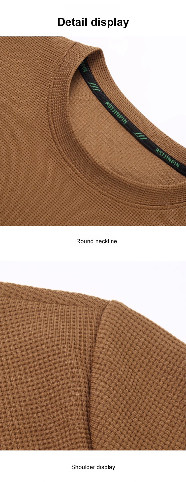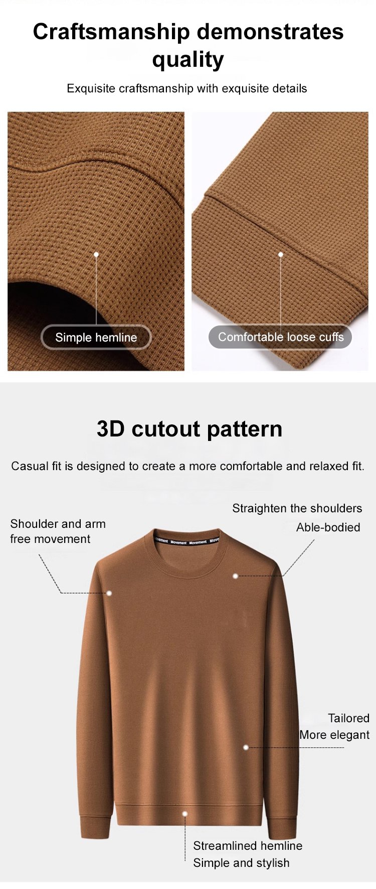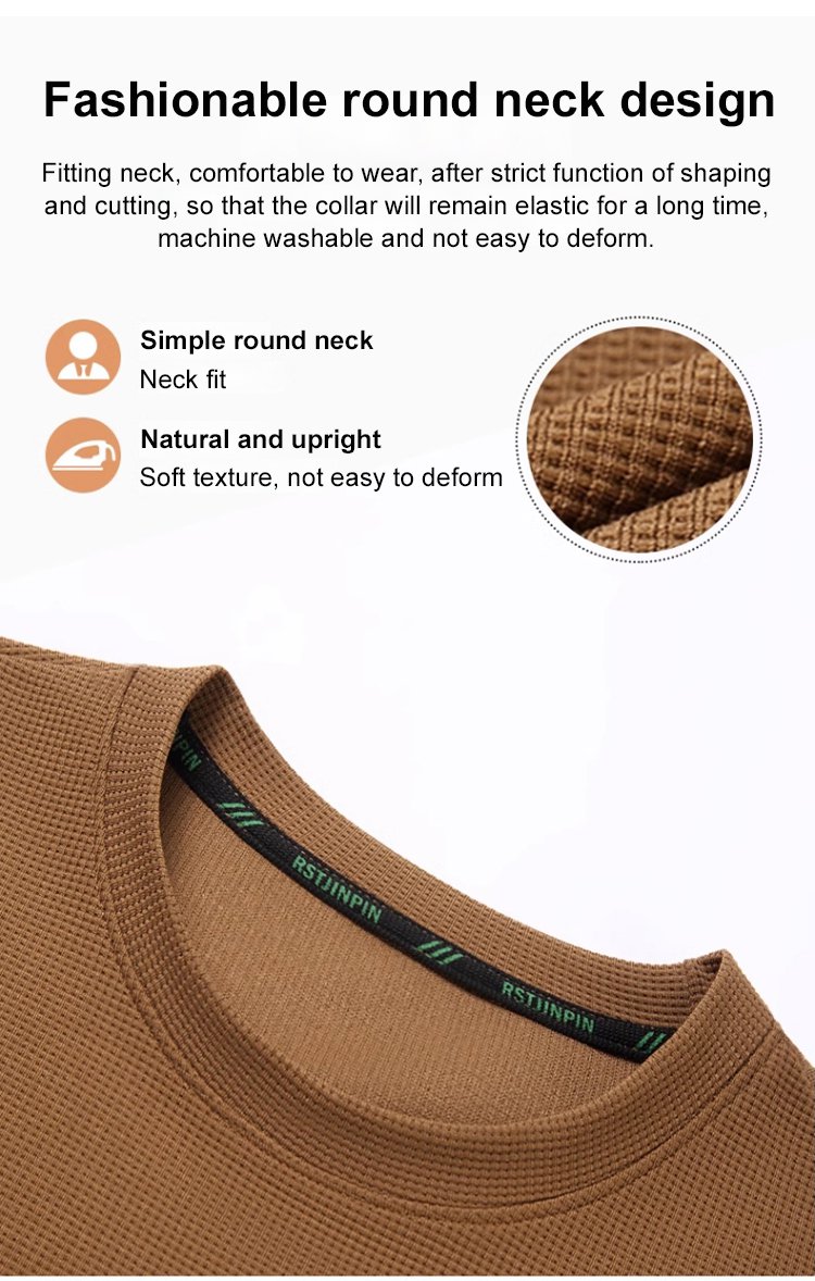 【High Quality】Round Neck Waffle Elastic Slim Fit Top