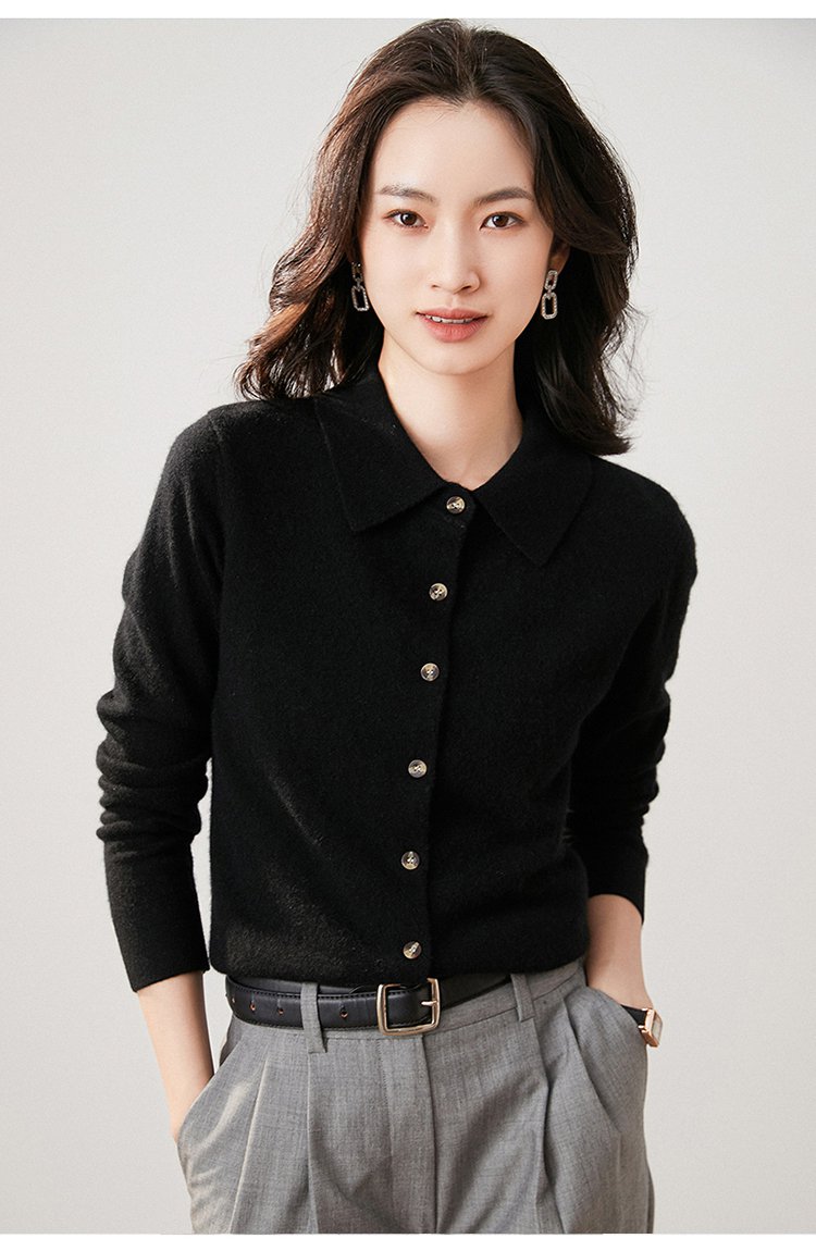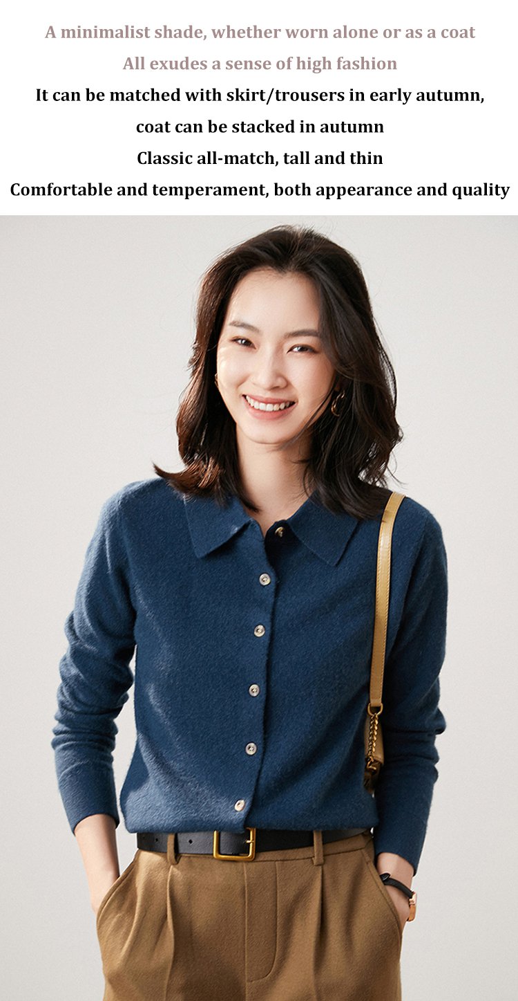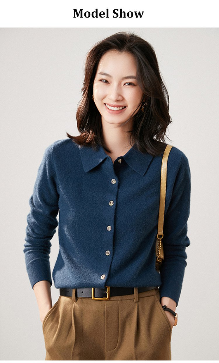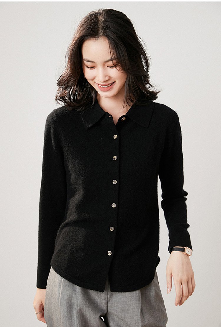 Loose Long Sleeve Polo Collar Knitted Cardigan