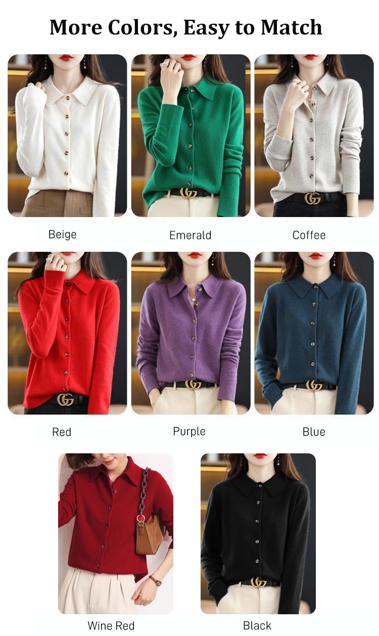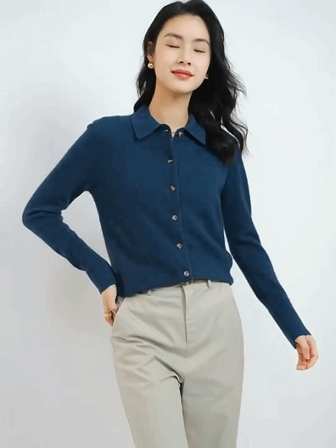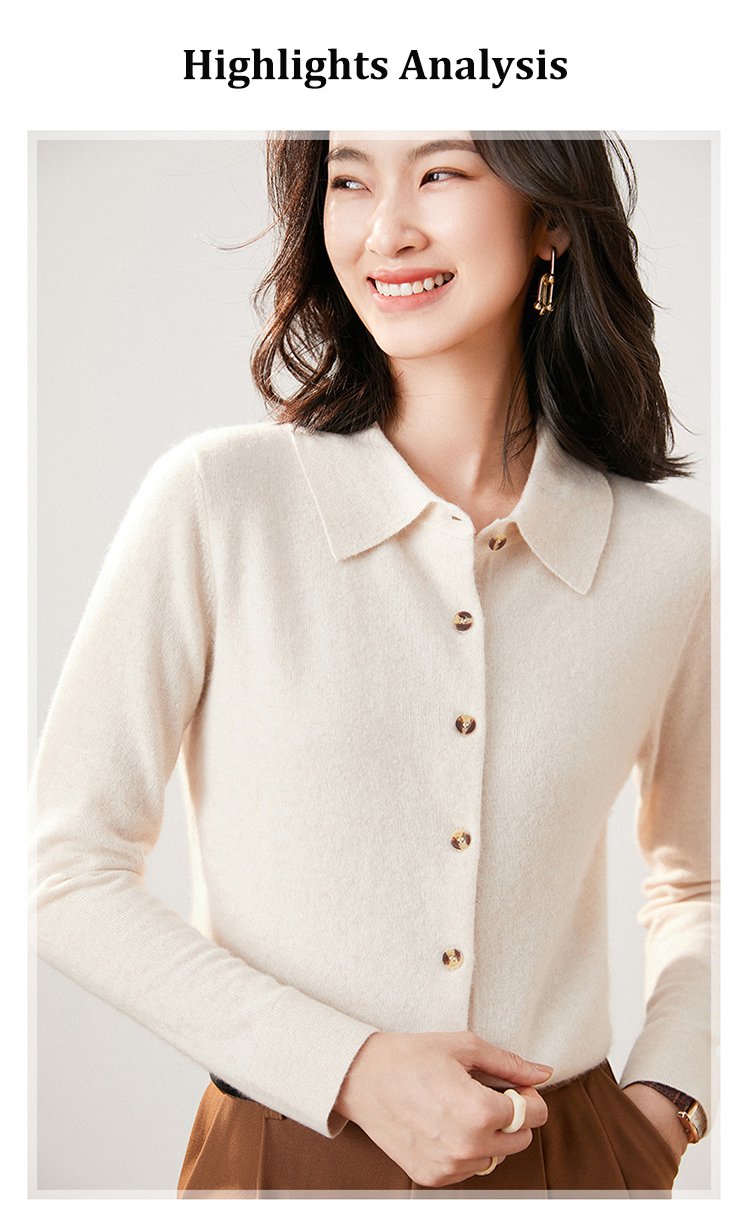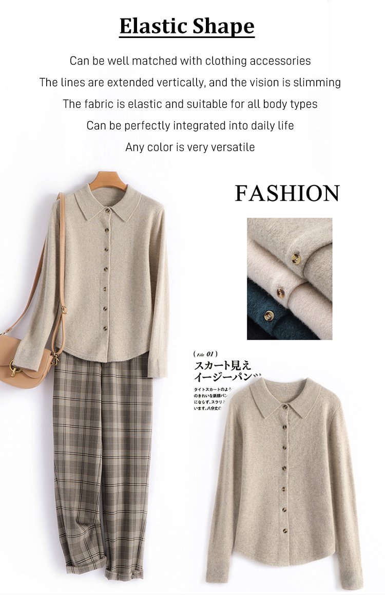Loose Long Sleeve Polo Collar Knitted Cardigan